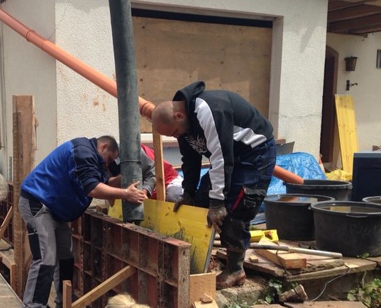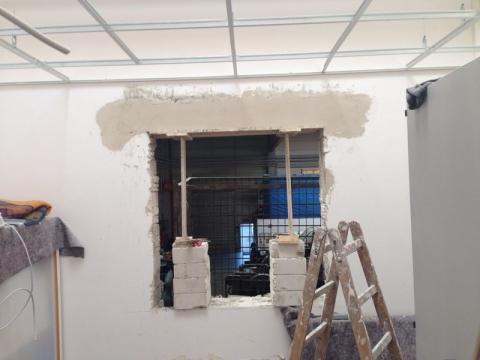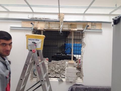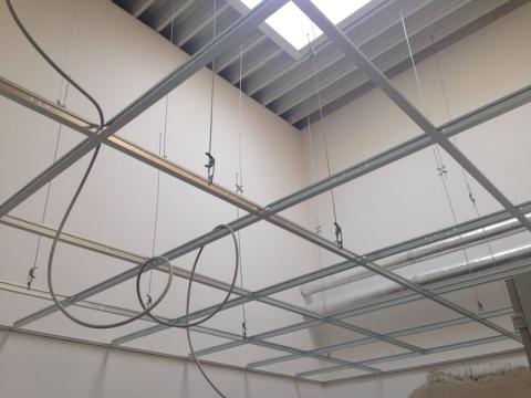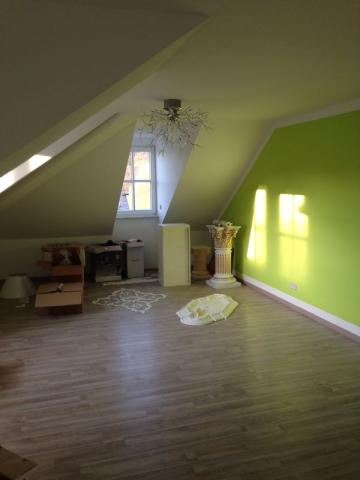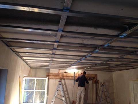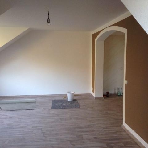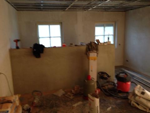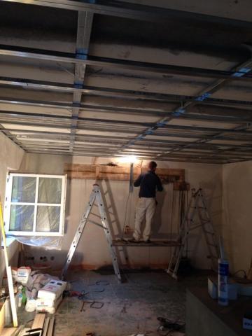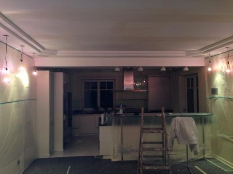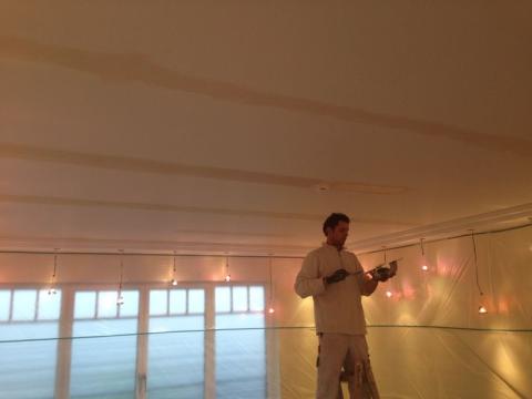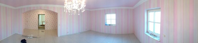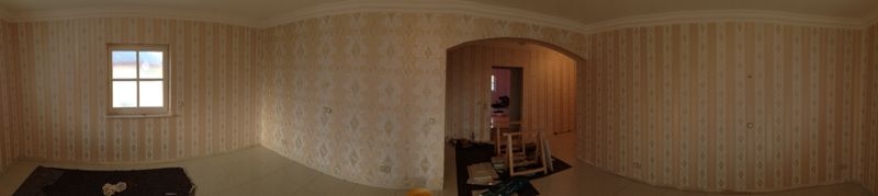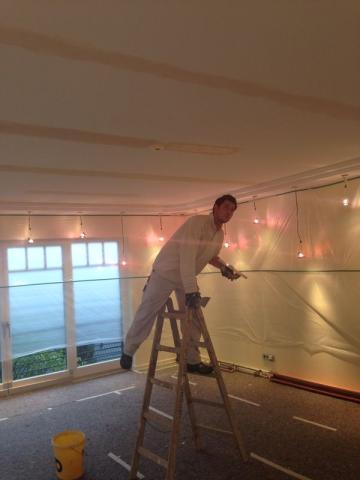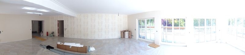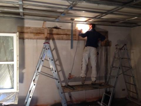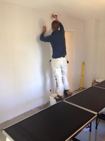 hier haben wir Wände und Decken gespachtelt, tapeziert,