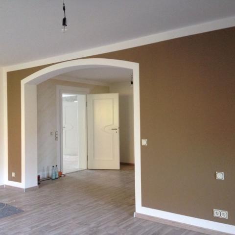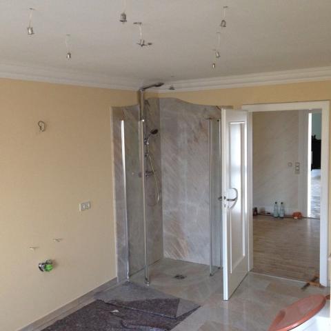 Holzsockelleisten verlegt, Granit verlegt, Decken gestrichen